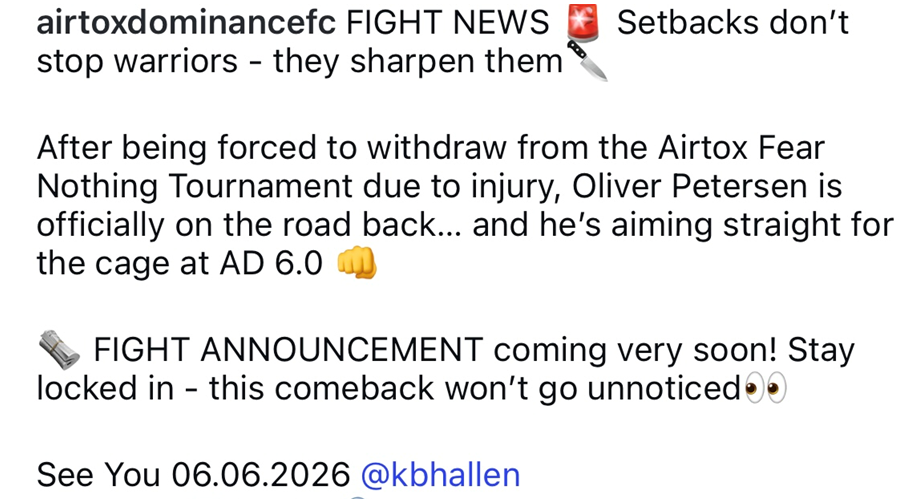 I opslaget teaser den danske MMA-promotion for, at comeback-kampen bliver én, der vil vække opsigt.
