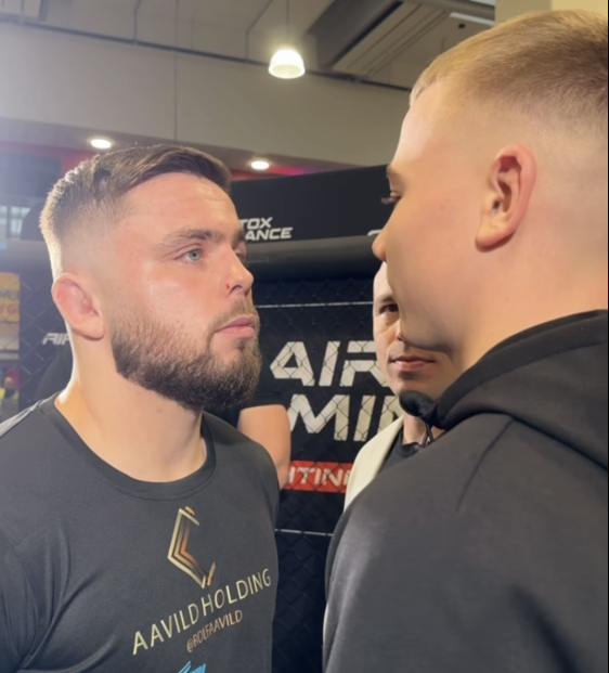 Men mest fokus fik Louis Thastum og Oliver Petersen. Den 24-årige Burnell MMA-kæmper og det bare 19-årige stortalent fra Great Danes Fight Club mødes i et regulært dansk brag i KB Hallen til juni – og ved torsdagens pop-up stod de to danske profiler ansigt til ansigt i en decideret face-off.