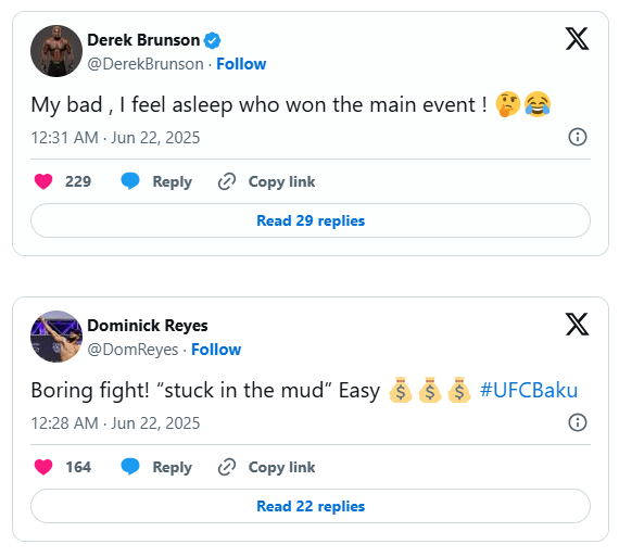 Men på det sociale medie X blev der ikke sendt mange rosende ord i retning af main event-fighterne.