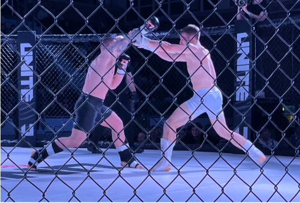 Senest aarhusianeren var i buret var ved UNITE #7 på hjemmebane i Vejlby-Risskov Hallen, hvor det blev til et nederlag på point til Deividas Milius (i hvide shorts) fra Frederikshavn MMA.