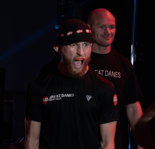Sigurd Rømer på vej i buret med UFC-legenden og Great Danes-headcoach, Martin Kampmann.
